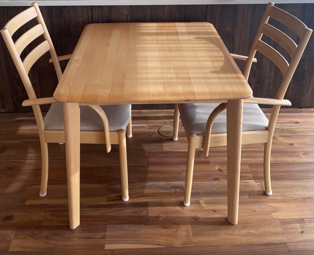 ✱テーブルのみニトリのダイニングテーブル(フィルン OC2 80 LBR)とダイニングチェア(YS002 イエロー)のセットです。チェアは2台お付けします。- テーブルの素材: 木製- テーブルの形状: 正方形- 椅子の色: 黄色- 椅子の素材: 布張り- テーブルのサイズ: 約80cm × 80cm ×70cm- テーブルの傷: 小さな傷あり(写真3、4枚目参照) 1年ほど使用しました。【定価】テーブル:29,990円イス:7,500円(1脚)テーブル、イス別売りも対応可能です。コメントにてお声がけ下さい。