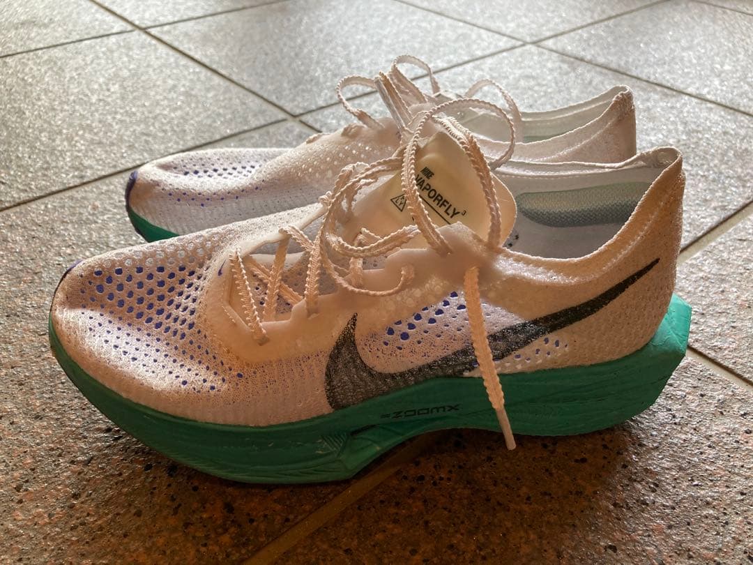 1ヶ月半ほど使いました。スパイクの性能は購入時とほとんど変わっていないと思います。付属品全て付いています。店で新しく買った時に中に入ってる型崩れを防ぐものだけありません。かかと部分にサインが入っています。気にしないという方だけご購入ください。- ブランド: Nike- 色: 赤/緑- 付属品: ナイキのトラックフィールドバッグ、ピン回し- モデル名: Nike Zoomご覧いただきありがとうございます。