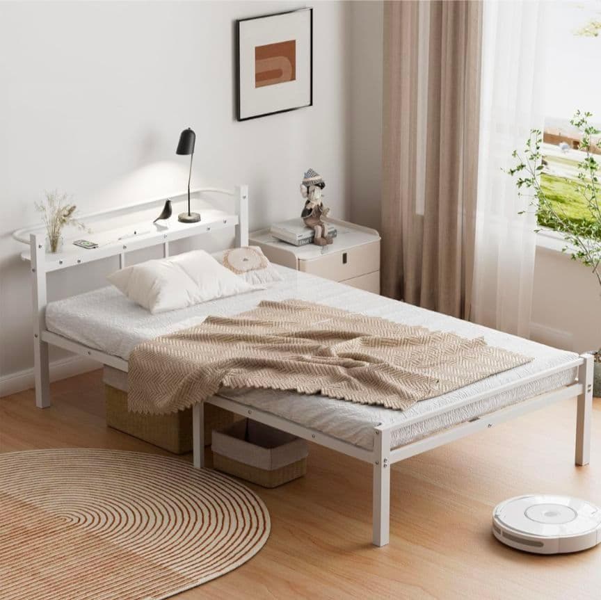 - 1人暮らしを始めるので購入しました。 組み立ては一人でも十分でき(ちょっとだけ苦労しますが)、組み上がった際の安定性は値段の割には良いなと思いました。(特別にぐらぐらしているわけでもなく、完全にがっちりしているかといえばそうでもないです。)ベッド下のスペースもあり、宮もあるので使い勝手は良いです。 ただ、ネットの端の処理が甘く指を切ってしまいました。値段が値段なので仕方がないですが><